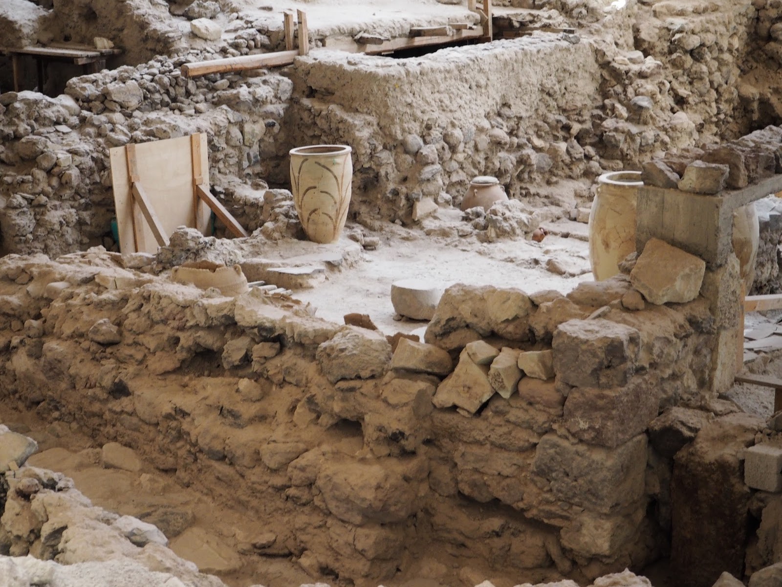 Po obědě se přesouváme do archeologického naleziště Akrotiri. Historie tohoto dávného prehistorického městečka sahá až do dob 6 tisíc př.n.l. Bloumání areálem je skutečným výletem do minulosti. V jednotlivých částech lze rozeznat uličky tehdejšího městečka, o kus dál pozůstatky stěn domů s viditelnými dveřmi nebo okny. Přemýšlím, kolik životů tu vyhaslo, jaké radosti a starosti zažívali místní obyvatelé.