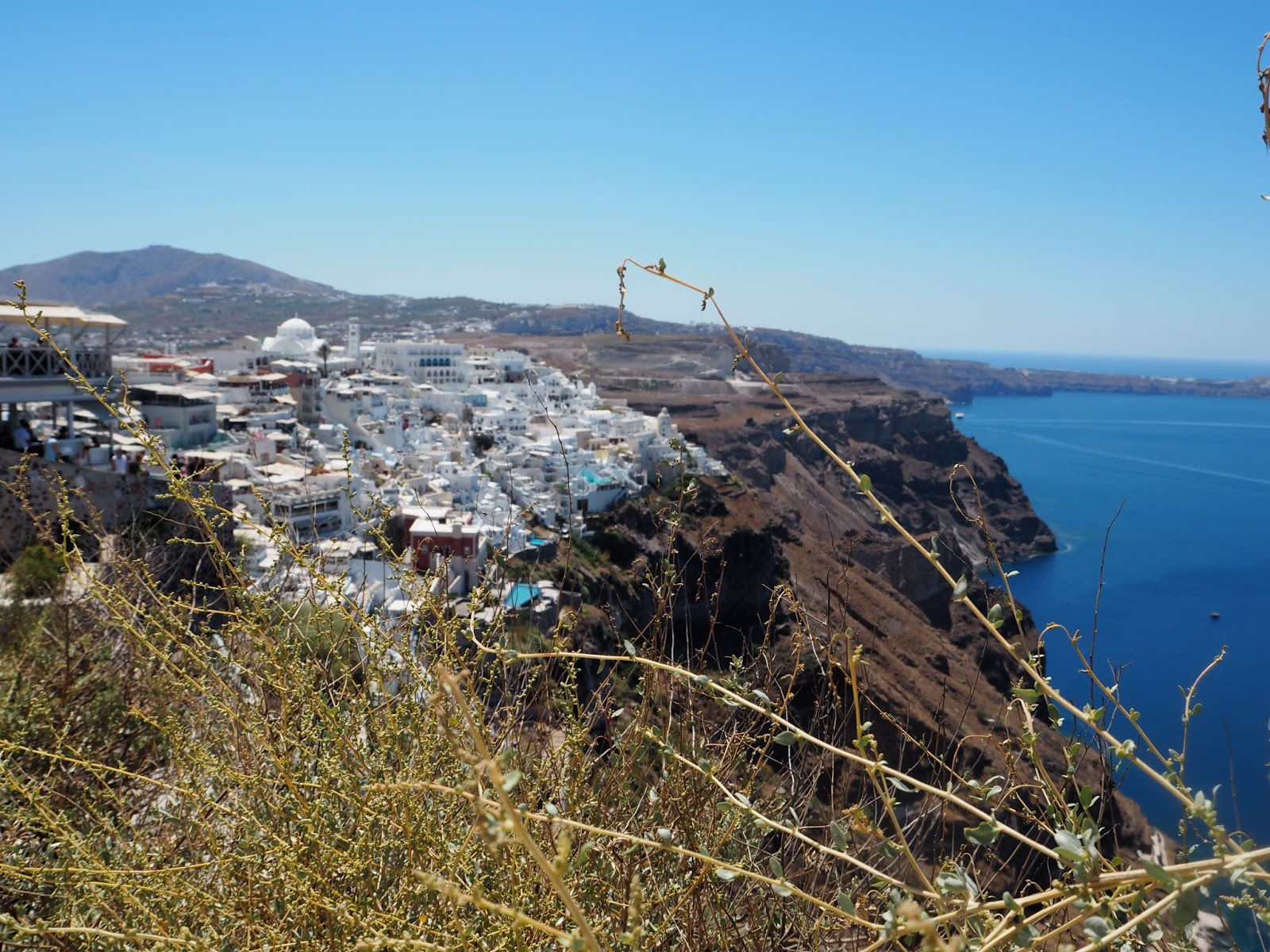 Procházíme spletitými uličkami lemovanými množstvím krámků se suvenýry všech druhů, míjíme nádherné taverny zasazené do stěn skalisek a poctivě všechno dokumentujeme. Foťáky cvakají a brady nám padají zas a znovu. Na oběd se zastavujem do jedné taverny, abychom si mohli Firu vychutnat plnými doušky. Obsluhuje nás příjemná paní domácí, povídá nám zajímavosti ostrova a života na něm a zásobí nás nemalým množstvím vína. Lidé jsou tu velmi pohostinní a přátelští.