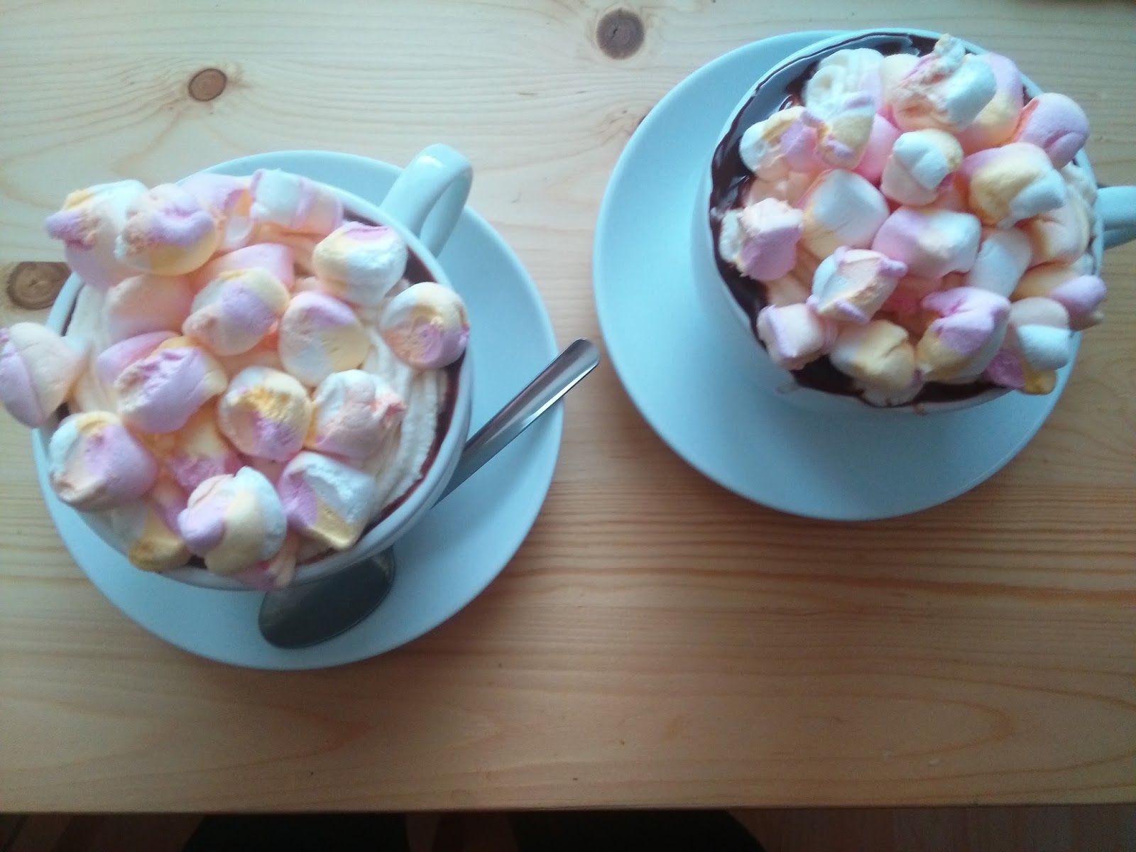 Poté do ní přidáme jeden kelímek smetany ke šlehání. A opět mícháme a mícháme a zase mícháme. Do doby než se smetana spojí s rozpuštěnou čokoládou. Z druhého kelímku smetany vyšleháme šlehačku. Hotovou čokoládu přelijeme do šálků, nastříkáme šlehačku a nakonec ji posypeme mini marshmallow, lentilkami, čokoládou nebo čímkoliv jiným, co máte rádi.